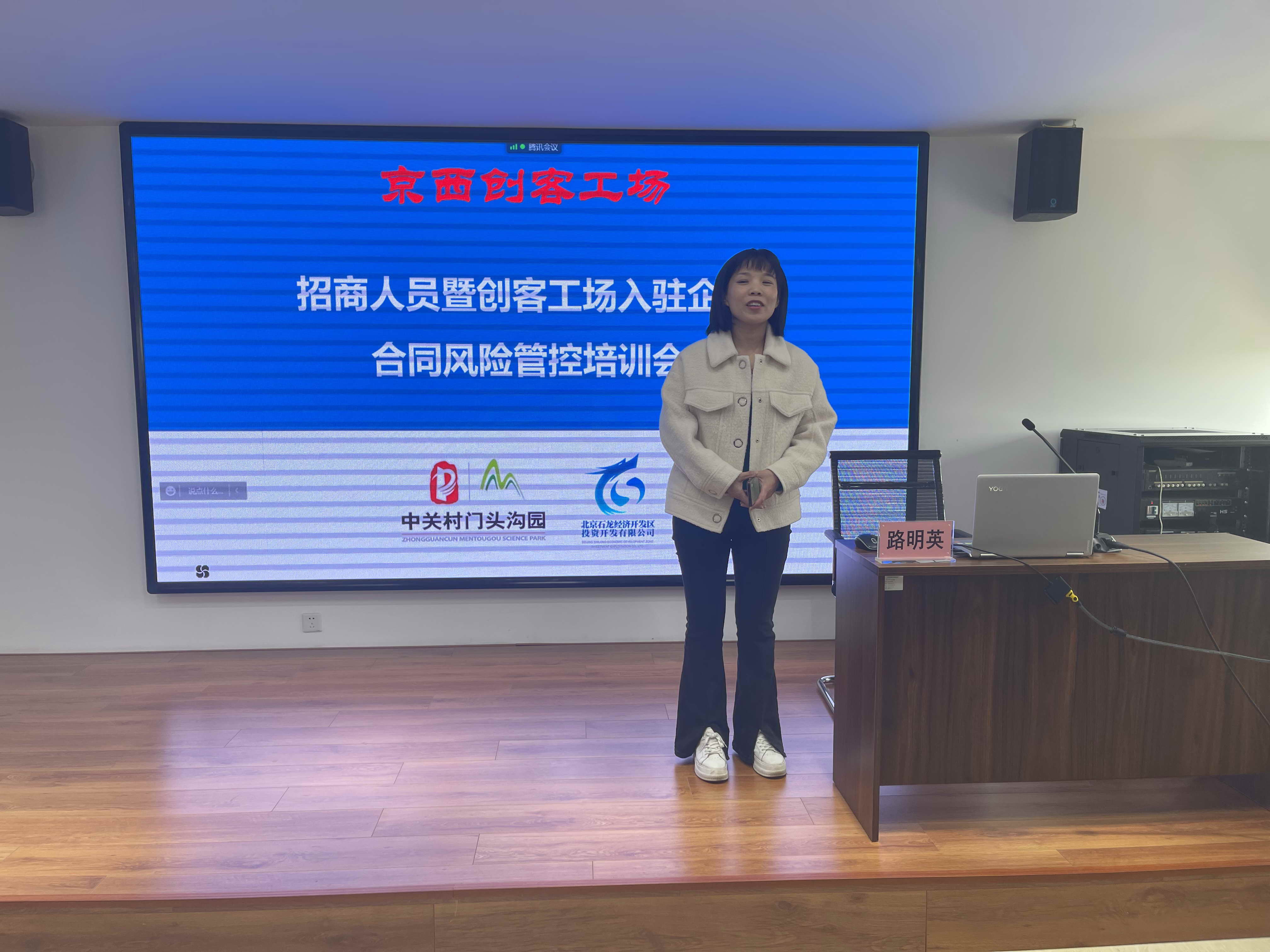 為提高招商人員崗位技能,促進公司招商人員實現(xiàn)知識更新與拓展,著力建設一支懂經(jīng)濟、懂產(chǎn)業(yè)、懂政策、懂服務、善于招商的隊伍。進一步加大創(chuàng)客工場企業(yè)服務力度,提高企業(yè)對相關法律、法規(guī)的了解,提升園區(qū)企業(yè)合同風險防范意識。幫助企業(yè)解決困難,助力企業(yè)高質量發(fā)展。按照《北京石龍經(jīng)濟開發(fā)區(qū)投資開發(fā)有限公司招商人員培訓方案》的文件要求,4月13日,石龍公司在石龍高科大廈舉辦了招商人員暨創(chuàng)客工場入駐企業(yè)合同風險管控培訓會議。石龍公司董事長劉春、司法局法律服務監(jiān)督管理科負責人路明英出席會議,門頭溝區(qū)投資促進服務中心、鑫融公司、石龍公司及部分入園企業(yè)50余人參加了本次培訓。