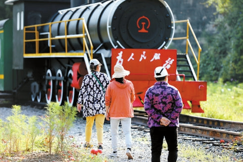 導(dǎo)覽過程中,他特意在山間的八路軍雕像處多停留了一會兒,為游客講述著這里的紅色文化。在邢衛(wèi)兵的帶領(lǐng)下,游客們走過虛擬的“戰(zhàn)場”“防空洞”,來到了紅色文化紀(jì)念館??粗拱濉嵨锖偷袼?,不少游客的神情變得肅穆起來。一旁的邢衛(wèi)兵看在眼里,喜在心頭,挖掘紅色文化這步棋,炭廠村又走對了。