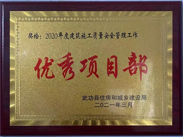 4月25日,武功縣住房和城鄉(xiāng)建設(shè)局表彰了2020年度建筑施工、房地產(chǎn)開(kāi)發(fā)和物業(yè)管理工作先進(jìn)集體和先進(jìn)個(gè)人,四分公司陜西金沙河項(xiàng)目榮獲“2020年度建筑施工質(zhì)量安全管理工作優(yōu)秀項(xiàng)目部”稱號(hào)。