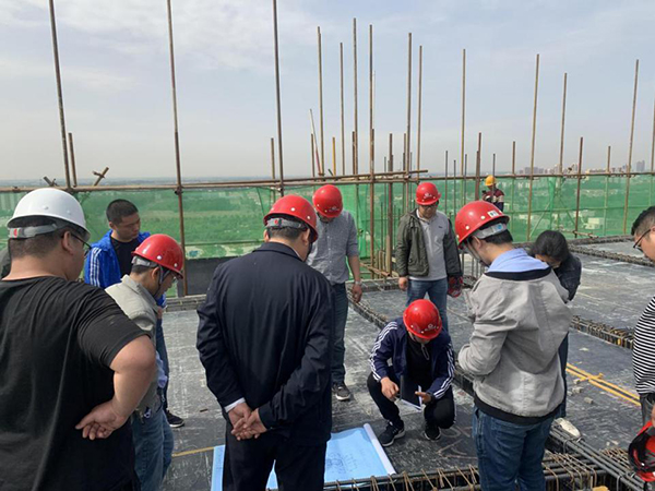 巡查組對(duì)項(xiàng)目施工層(14層)模板、鋼筋安裝質(zhì)量進(jìn)行檢查